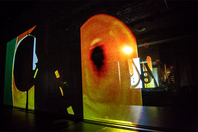 The show culminated in a dark, immersive, heart-racing finale, The audience eased on to the Purcell Room Stage to be engulfed by wall-to-wall layers of cinema screens while a live Kathak dancer emerged ghost-like sliding over the architecture, to dance the refurbished auditorium, a final human touch blending seamlessly with the sound and film, tracing out 50 years of contemporary, experimental and ground breaking repertoire.